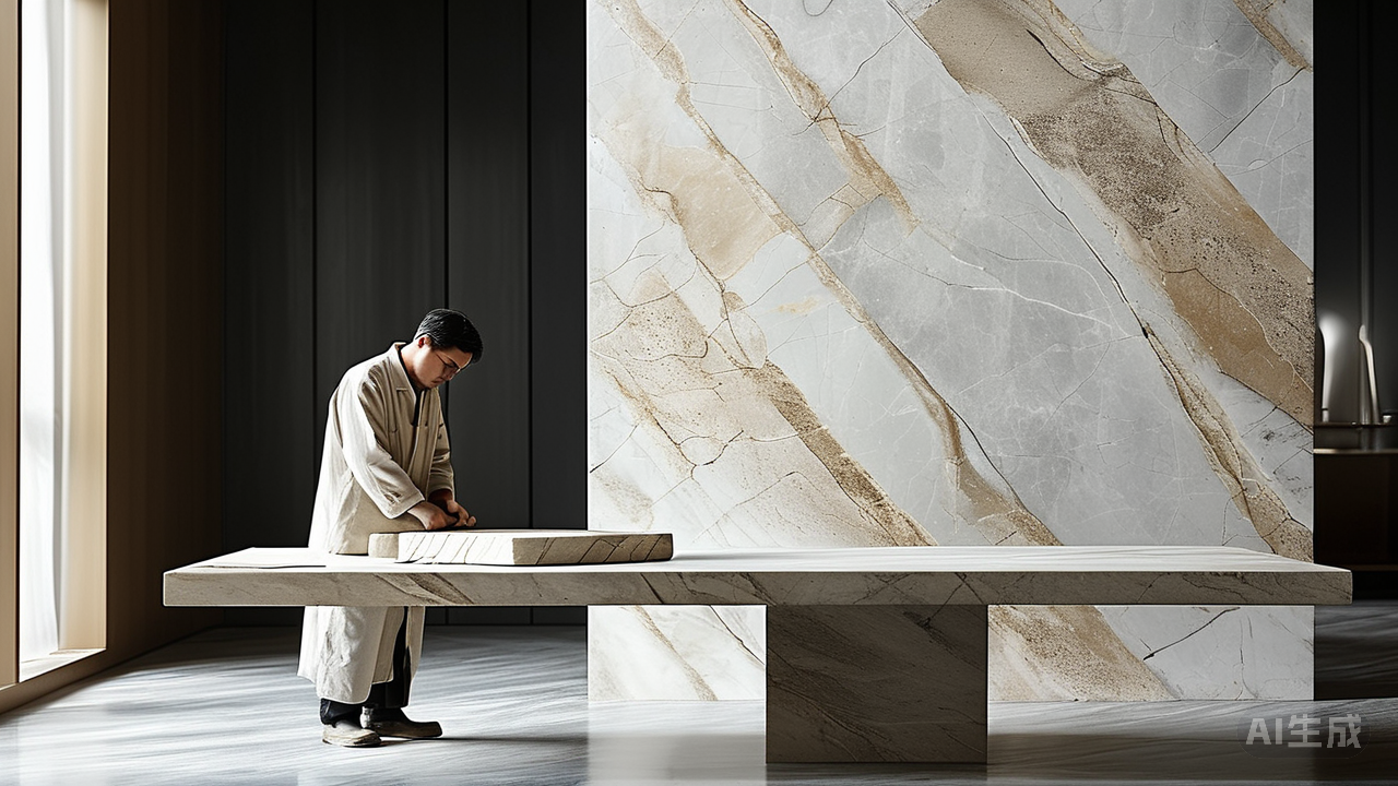 表里如一:通体质感与时光共舞 自由无限连纹的魅力,更深刻植根于其“通体”本质。不同于仅表面附彩釉的仿石材料,通体大理石从核心到表面,每一寸肌理都深入骨髓。这不仅赋予其无可替代的天然质感,更使其经得起岁月最苛刻的审视——即便在玄关、西厨岛台等高频使用区域遭遇磨砺,其显露的内在纹理依然与表层完美呼应,犹如璞玉历经雕琢,愈显温润深沉。奢华拒绝浮于表面的光鲜,通体大理石正是以这内蕴的恒久生命力,为豪宅空间注入一份不惧时光流转的从容底气。