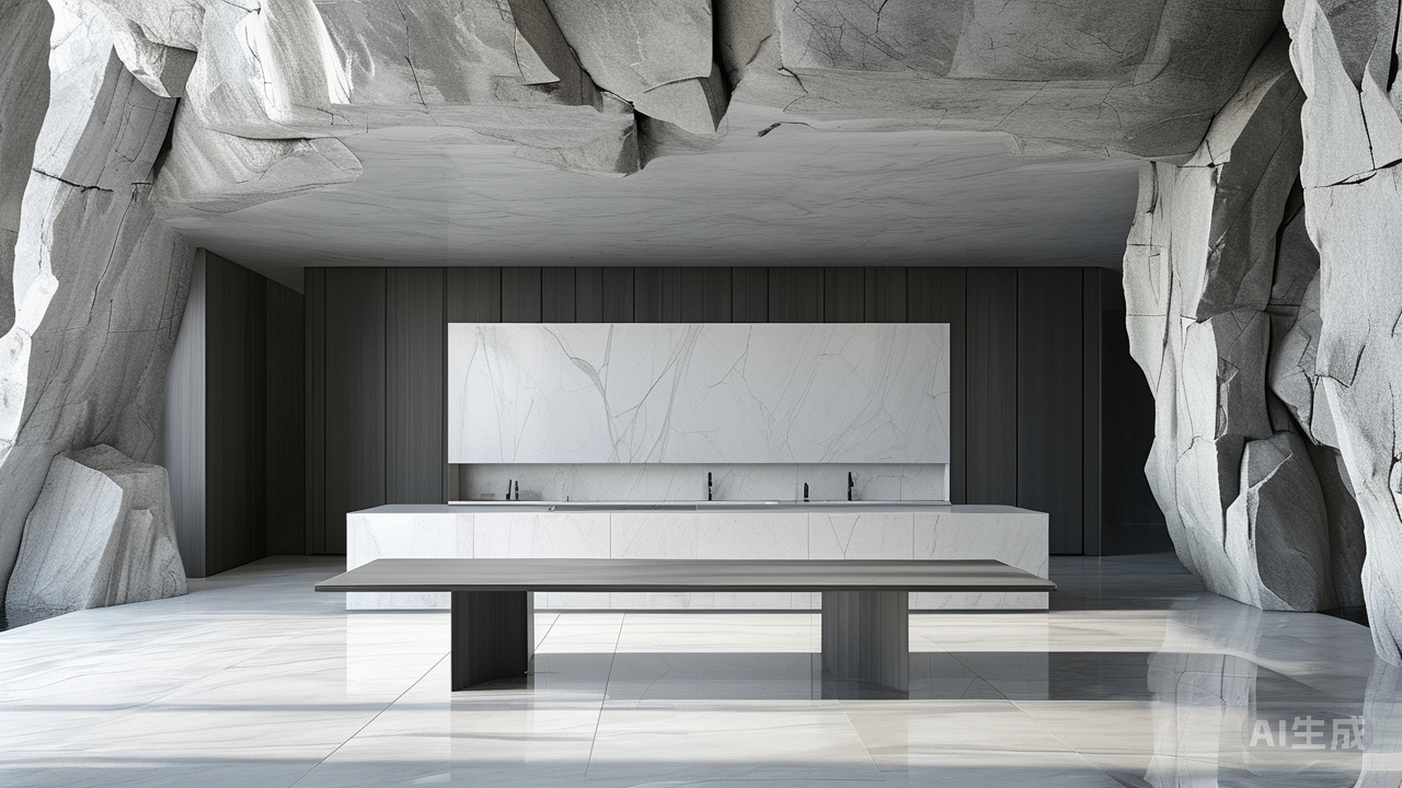 岩板的灵魂,更在于其无言的**“静奢”力量**。它无需繁复雕琢,仅凭材质本身的硬朗质感与温润光泽——其表面触感如丝缎般细腻,却又冷峻如石;在自然光线下,矿物晶体折射出微妙的光泽,既不刺目也不暗淡,仿佛低调的贵族,气度自显。当岩板与温润木质、柔和织物相遇,碰撞出刚柔并济的张力;当它与金属线条勾勒的灯饰或家具组合,则激发出理性与奢华的共振。每一处搭配,皆在无声诉说轻奢风对材质混搭的精妙把控与对空间氛围的精确塑造。