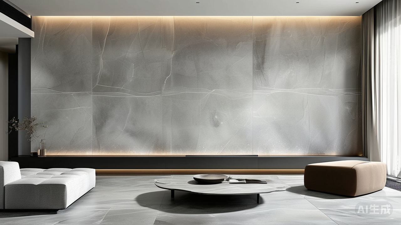 轻奢美宅的秘诀:用大规格岩板与极简线条塑造空间感空间感,是当代住宅最奢侈的尺度。它并非来自面积的阔绰,而是源于视觉的舒展、气韵的流动。当轻奢美学遇上有限空间,大规格岩板与极简线条便成为塑造这份通透感的不二法门,让居所超越物理边界,尽显开阔风范。 大规格岩板:浑然天成的空间画卷 告别小片拼接的琐碎感,大规格岩板以整幅铺陈的恢弘气度,为空间注入磅礴生命力。客厅背景墙一整面如丝绸纹理的岩板从容垂下,接缝几近于无,瞬间拉伸空间纵深——墙面不再是冰冷的围合,而是如画卷般舒展延伸,将视线引向无限远方。地面通铺同色系岩板,纹理自然衔接如一体,行走其上,每一步都踏在开阔的韵律中。岩板本身细腻的质感与冷静光泽,正是轻奢风骨最无声的宣言:在低调的奢华里,空间的气度自然流淌。