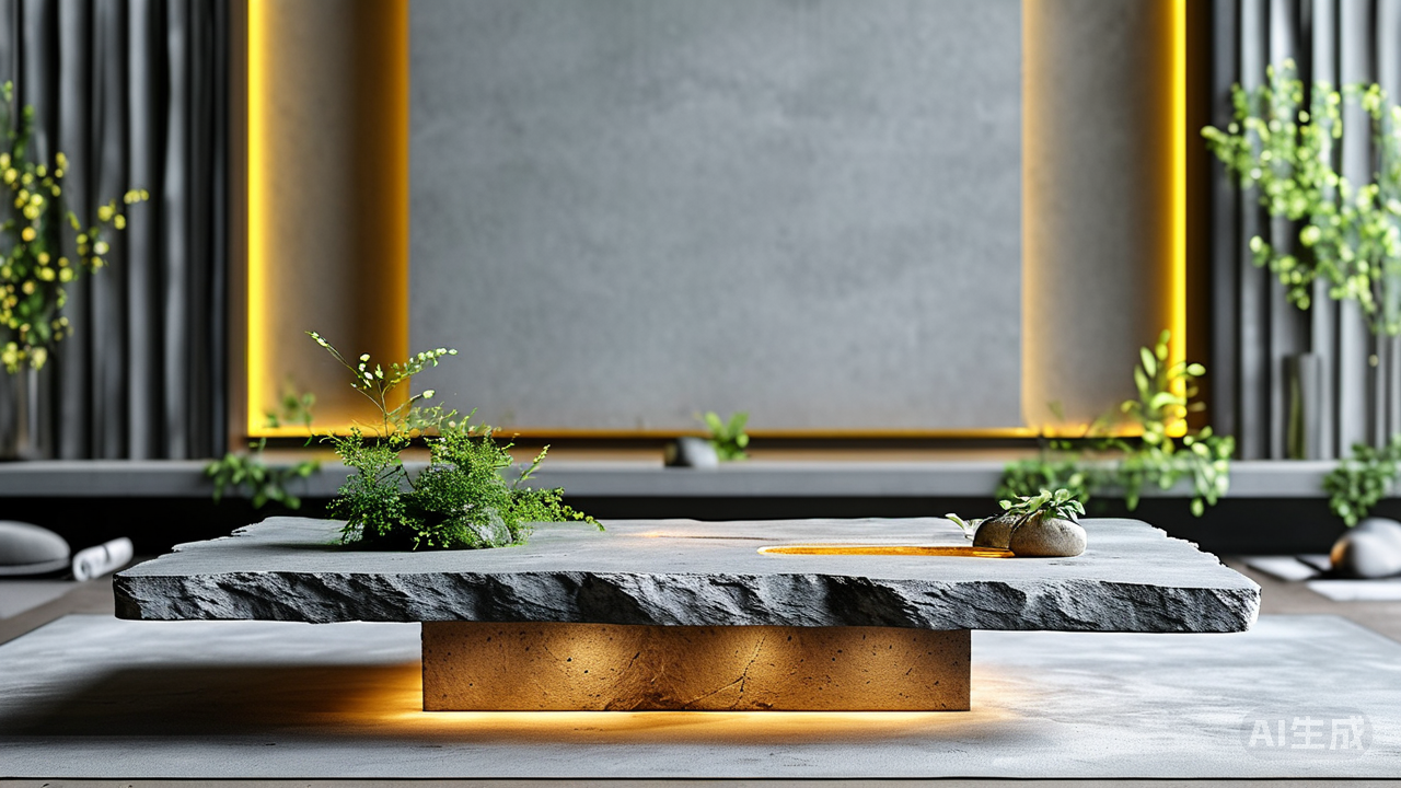 家具与细节,赋予器物新灵魂。 岩板以其强度与温润感,正重写家具与器物的质感语言。一张由整块岩板精琢而成的餐桌,其坚硬的表面几乎无视刀痕烫印,而天然石纹又流淌着不可复制的优雅。更有大胆设计者,将岩板与柔和光源巧妙结合,桌面下透出的微光,将石头的沉静与光的灵动完美糅合,点亮了空间氛围。那岩板精心包裹的茶几、边几,则如自然馈赠的雕塑立于厅堂,以其无可比拟的纹理与冷峻质感,为居室注入一份现代气息的冷静。甚至细微如开关面板、门套边线,亦可使用纤薄岩板替代传统塑料或金属,不仅防刮耐用,更以其低调的天然肌理,默默提升着空间的精致感受。