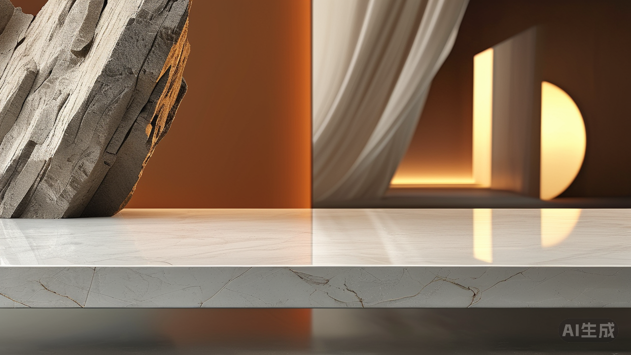 应用无界:空间美学的自由构型 岩板的物理特性使其在空间应用上拥有前所未有的自由度与完整性。其极致纤薄(可达3mm)却能承重抗冲击,超大幅面(可达3.2x1.6m)几乎无缝拼接,结合卓越的耐高温、防污、抗菌特性,使其成为空间的“全能艺术家”: