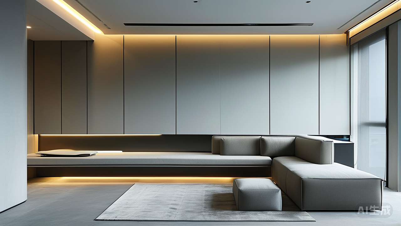 如果说岩板是空间的“肌肤”,那么极简线条就是空间的“骨骼”,负责定义形态、引导视线、营造秩序: