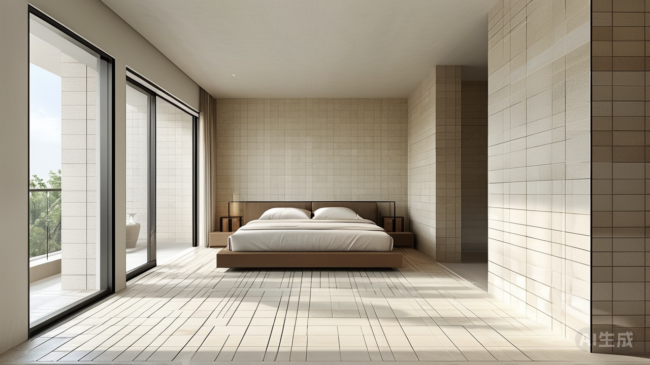 小户型卧室瓷砖技巧:浅色系瓷砖 + 通铺,视觉扩容 20%7平米?8平米?小户型卧室常令人束手无策——杂物稍多便拥挤不堪,家具一摆空间更显局促。拥挤感如影随形,呼吸都仿佛带着重量。 别担心!浅色系瓷砖通铺正是你的空间解药。 选对颜色,光线即盟友。 浅米白、柔雾灰、细腻奶咖——这些低明度、高反射的浅色瓷砖,是光线的天然画布。它们温柔捕捉每一缕自然光与灯光,再均匀漫射至房间每个角落。物理空间未变,视觉边界却被悄悄推远,狭小感冰消瓦解。 想象晨光倾泻在浅米白地面,房间瞬间澄澈通透,心也随之轻盈舒展。避开深色或复杂纹理,它们如无形之墙,只会压缩你珍贵的空间感。