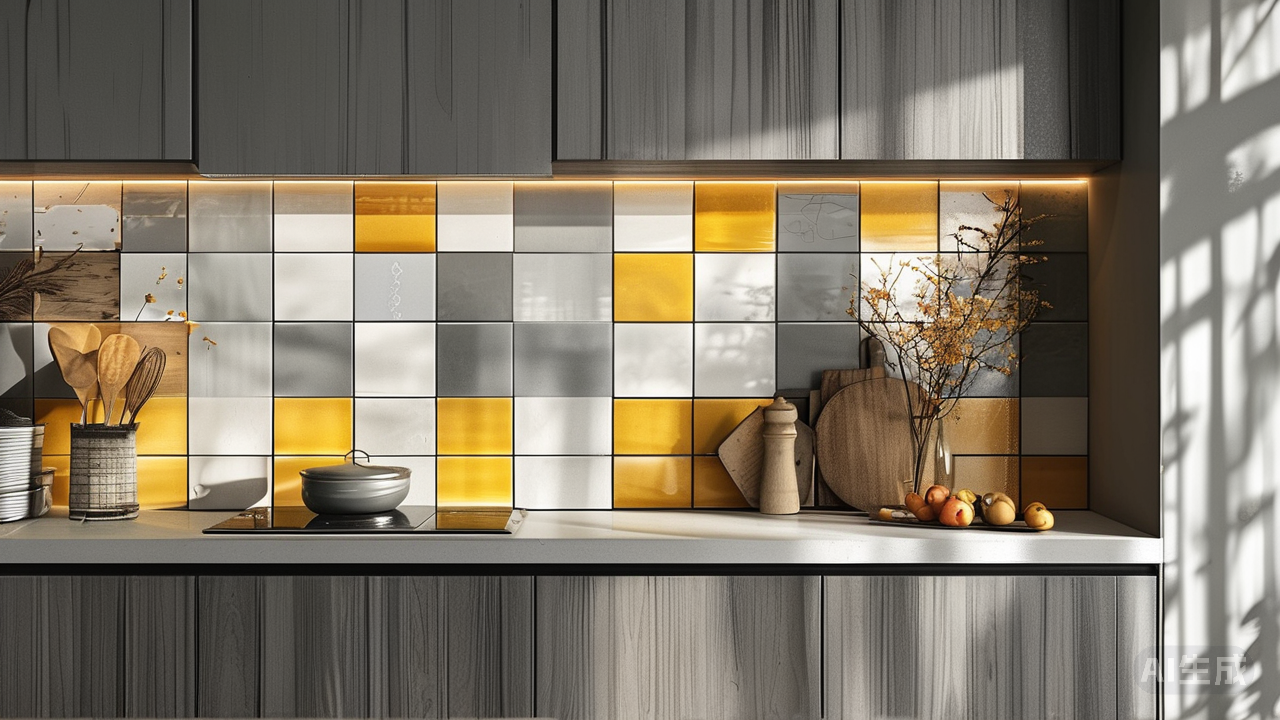 暖黄点睛,如阳光浸染砖面,点亮空间温度。小块花砖或黄色点缀于厨房防溅墙,如柠檬切片般清新跳跃;大地色系米黄或奶油色瓷砖大面积铺陈,则似秋日麦田,暖意流溢。但黄色若喧宾夺主,空间便失均衡,只可如香料般点睛增香。黄与灰交织,是冷暖相宜;与白相融,则显明亮柔和。