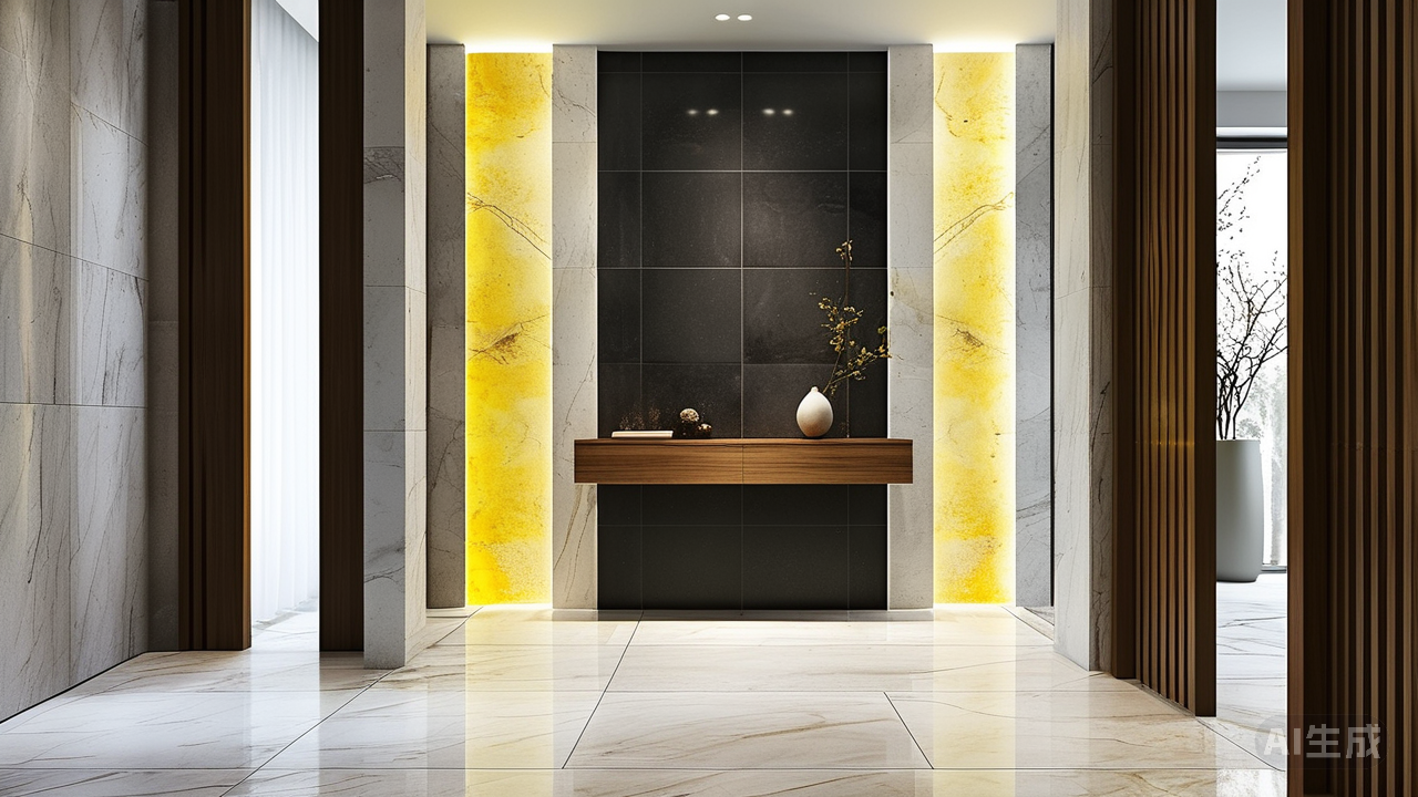 瓷砖色系决定家的基调:深、黄、白、灰、木纹的搭配逻辑瓷砖是居室的地基色盘,其选色逻辑如同画家调配颜料,深、黄、白、灰、木纹五色交映,才能铺展一幅和谐的空间画卷。 深色为锚,藏于大地,定下空间的稳重骨架。玄关处几块深灰或墨蓝瓷砖,是归家最初的安稳拥抱;浴室地面深色铺陈,则如静谧湖面,引目光沉静。但需节制其重——若在狭小厨卫中铺满深色,反如浓雾弥漫,令人压抑。巧妙铺陈几块,便足以收束全局,令空间气韵内敛。